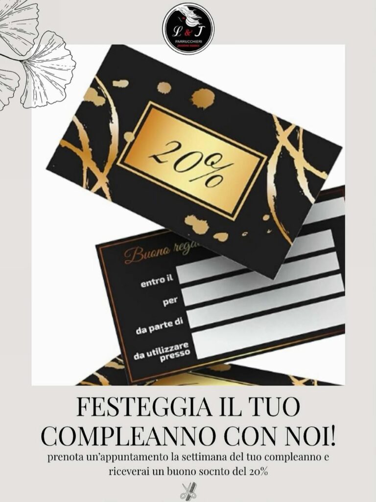 Se prenoti nella settimana del tuo compleanno  (basterà mostrarci un documento), riceverai IN REGALO un buono sconto del 20% da utilizzare al tuo prossimo appuntamento !